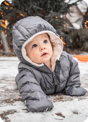 كرسى حضانة بنى بمسند دائرى يقدّم دعماً مريحاً للأطفال.